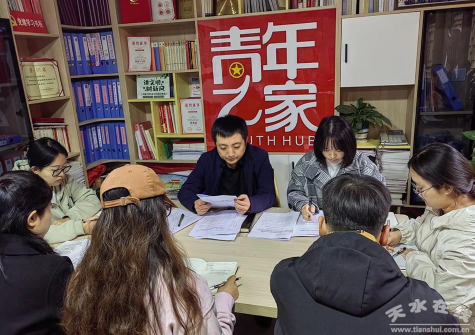 共青團(tuán)秦州區(qū)委召開會議,專題學(xué)習(xí)黨的二十大精神。會議要求,團(tuán)區(qū)委干部要把學(xué)習(xí)貫徹黨的二十大精神作為當(dāng)前和今后一個時期的首要政治任務(wù),精心組織、周密部署,對黨的二十大精神先學(xué)一步、深學(xué)一層;要充分發(fā)揮青年大學(xué)堂、青年講師團(tuán)、主題團(tuán)(隊(duì))課載體作用,用青少年喜聞樂見的方式做好黨的二十大精神的“青年化”闡釋,在全區(qū)團(tuán)員青年中迅速掀起黨的二十大精神學(xué)習(xí)熱潮;要以抓好縣域共青團(tuán)基層組織改革工作為契機(jī),主動作為,擔(dān)當(dāng)盡責(zé),充分發(fā)揚(yáng)黨有號召團(tuán)有行動的優(yōu)良傳統(tǒng),將黨的二十大精神貫徹到工作全過程,以昂揚(yáng)向上的精神和奮發(fā)有為的干勁推動團(tuán)區(qū)委事業(yè)高質(zhì)量發(fā)展。