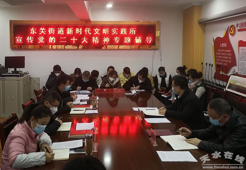 12月12日,東關(guān)街道新時代文明實(shí)踐所召開宣傳黨的二十大精神專題輔導(dǎo)會,深入學(xué)習(xí)黨的二十大精神,推動街道上下再次掀起學(xué)習(xí)宣傳黨的二十大精神熱潮。會議要求,街道上下要利用“三會一課”、主題黨日及黨員干部教育培訓(xùn)等形式,深刻感悟精神實(shí)質(zhì)、準(zhǔn)確把握核心要義,切實(shí)用黨的二十大精神統(tǒng)一思想行動。要立足街道發(fā)展實(shí)際,牢牢把握工作主動,以更加昂揚(yáng)的斗志、更加務(wù)實(shí)的作風(fēng),不斷把學(xué)習(xí)成果轉(zhuǎn)化為指導(dǎo)實(shí)踐,推動工作的強(qiáng)大動力,高質(zhì)量推動當(dāng)前各項(xiàng)工作再上新臺階。