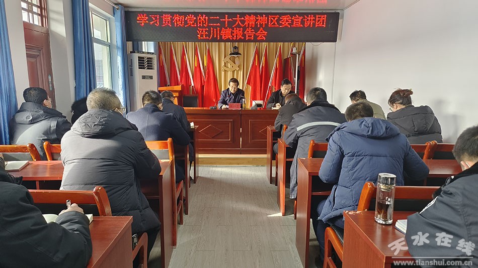 秦州區(qū)融媒體中心1月18日訊(記者 崔磊)1月18日,學(xué)習(xí)貫徹黨的二十大精神區(qū)委宣講團(tuán)宣講報告會在汪川鎮(zhèn)舉行,秦州區(qū)人大常委會二級巡視員魏勝奎作宣講報告,區(qū)人大常委會副主任劉曉軍主持報告會。