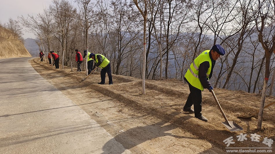 在太牡公路牡丹段沿線,村民們對路邊枯枝干草、堆積物、磚瓦石塊等存留垃圾進行清理。同時,對路肩進行整修、松土,開展綠化前期準備工作。
