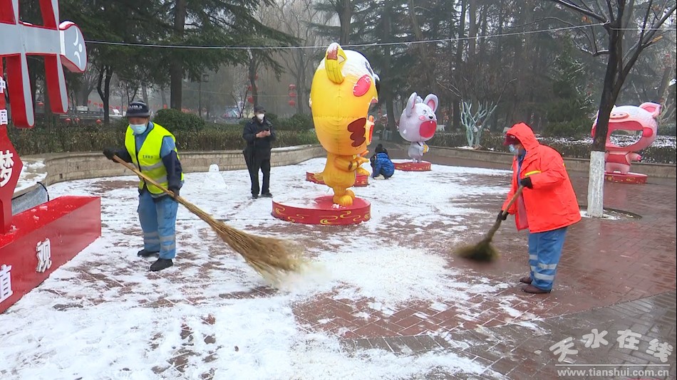 在城區(qū),降雪量達(dá)到2.5毫米,積雪厚度1厘米,但由于此次降雪融化較快,各主要路段出現(xiàn)積水,為防止降溫后出現(xiàn)道路結(jié)冰,秦州區(qū)環(huán)衛(wèi)治理中心及時啟動雨雪天氣應(yīng)急預(yù)案,組織環(huán)衛(wèi)工人清掃道路積雪及積水,保障道路暢通和市民出行安全。