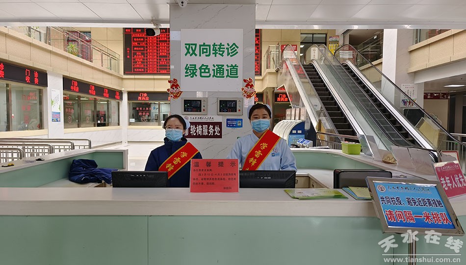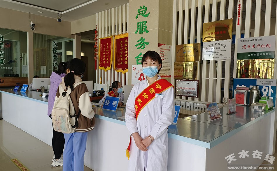 干凈整潔的就醫(yī)環(huán)境、規(guī)范到位的服務(wù)引導(dǎo)、內(nèi)容豐富的創(chuàng)城展板……走進(jìn)秦州區(qū)人民醫(yī)院門診樓一樓大廳,一股文明新風(fēng)撲面而來。門診大廳設(shè)置的學(xué)雷鋒志愿服務(wù)崗格外醒目,工作人員正在為前來就醫(yī)的市民提供熱心的志愿服務(wù)。