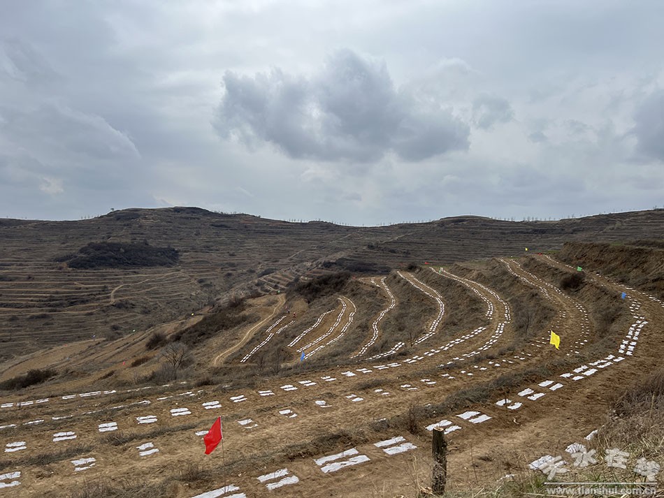 汽車沿著崎嶇的山路行駛,路邊盛開的黃色連翹花在陽光照射下異常鮮艷,瞬間就吸引了大家的目光。連續(xù)下坡,經(jīng)過溝底再爬坡,快到坡頂時,眼前就是天水市秦州區(qū)秦嶺鎮(zhèn)中玉村連翹中藥材種植基地。經(jīng)過村民覆膜、起壟、栽苗后,漫山遍野的塑料薄膜在梯田里泛著銀光,形成了一道道獨特的風景線。