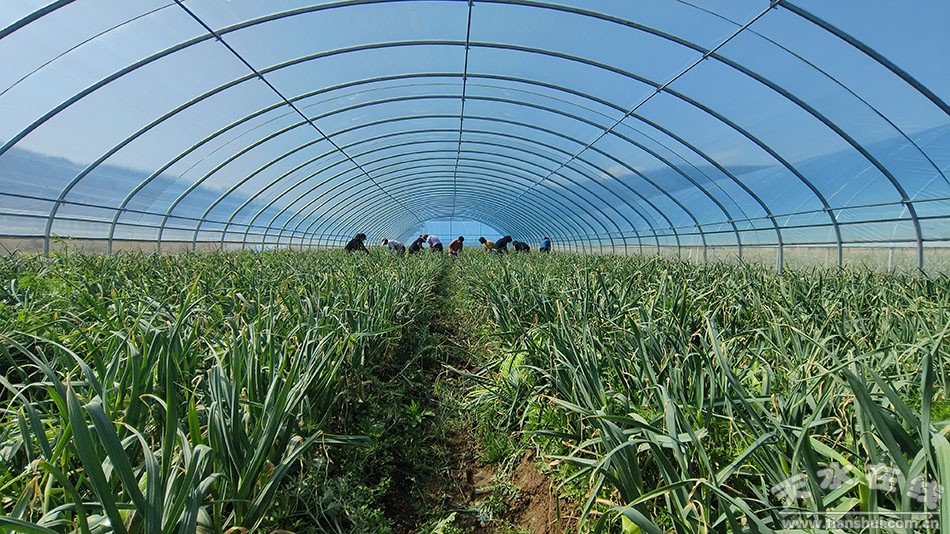 “我們每天抽蒜薹能達到2000斤以上,市場價錢每斤4元到4.5元之間,我也是第一次種,今年的效益各方面還挺滿意!鄙瓎⒓压麡浞N植農(nóng)民專業(yè)合作社負責(zé)人楊愛國說。