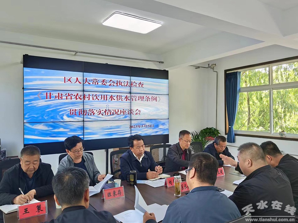 秦州區(qū)融媒體中心5月24日訊 5月23日至24日,區(qū)人大常委會(huì)副主任劉書(shū)文帶領(lǐng)秦州區(qū)人大常委會(huì)執(zhí)法檢查組,先后深入皂郊鎮(zhèn)徐家店水廠、齊壽鎮(zhèn)后寺新村居民戶(hù)、牡丹鎮(zhèn)張家寨村峽門(mén)水廠等8個(gè)現(xiàn)場(chǎng),對(duì)全區(qū)貫徹實(shí)施《甘肅省農(nóng)村飲用水供水管理?xiàng)l例》情況進(jìn)行執(zhí)法檢查。區(qū)政府副區(qū)長(zhǎng)薛小海陪同檢查。