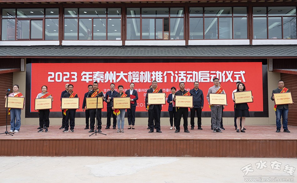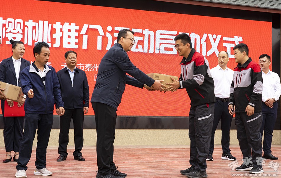 啟動(dòng)儀式上,對全區(qū)2022年秦州大櫻桃十佳種植企業(yè)進(jìn)行了表彰,宣介了秦州大櫻桃快遞服務(wù)優(yōu)惠政策,并向?yàn)槲沂幸咔榉揽刈龀鲋卮筘暙I(xiàn)的華天集團(tuán)董事長肖勝利、SOHO中國執(zhí)行董事潘石屹,以及為秦州大櫻桃宣傳推介作出貢獻(xiàn)的“秦州大櫻桃”公益代言人郭霽紅、順豐集團(tuán)副總裁許志君贈送今年首單“秦州大櫻桃”。