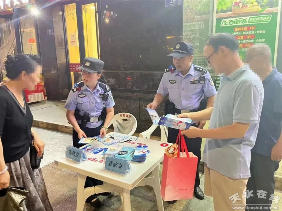 為深入開展夏季治安打擊整治行動,切實加強夏夜治安巡查宣防工作措施落實,秦州公安分局在開展好常態(tài)化巡查宣防工作的同時,采取多種方式,扎實開展防盜、反詐騙、拒賭毒、拒酒后滋事等防范宣傳教育,構(gòu)建全方位強大宣傳攻勢。
