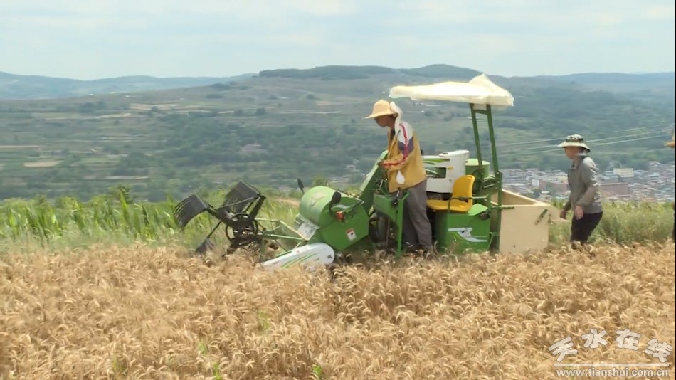 在秦嶺鎮(zhèn)大莊村和中心村千畝糧油示范基地,天水暢達(dá)農(nóng)業(yè)機(jī)械合作社的4臺(tái)收割機(jī)正在對(duì)最后400余畝小麥進(jìn)行收割,完成后,楊家寺、牡丹、秦嶺等鎮(zhèn)的“夏收”工作將全面完成。
