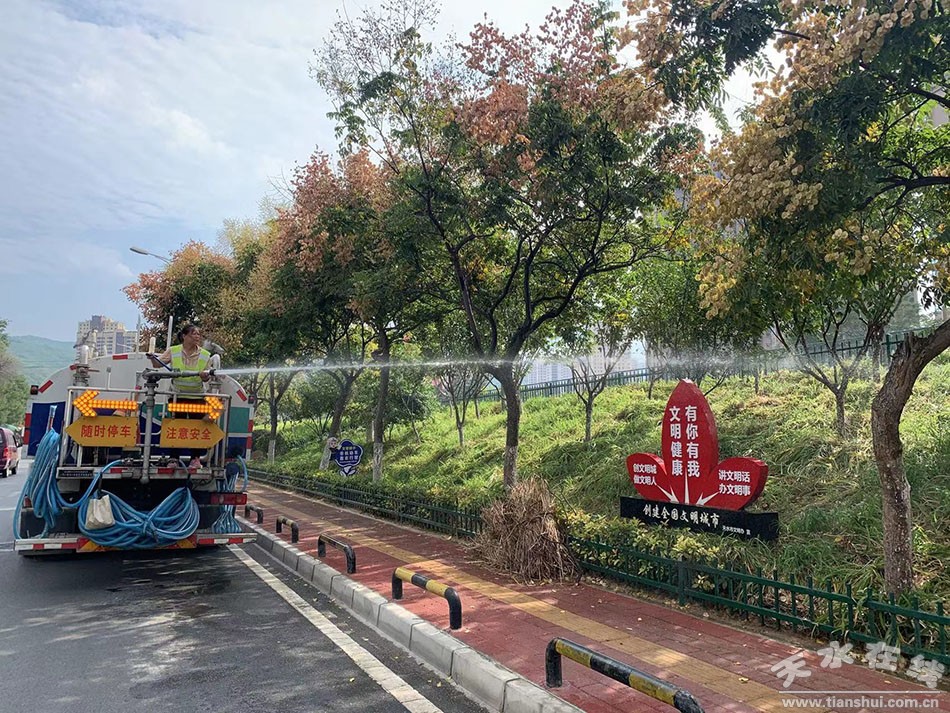 “充分利用綠地澆水管網及灑水車等一切可以利用的手段、設施和措施,根據(jù)喬、灌、草不同植物生長需要,針對性采用微噴、滴灌、漫灌等方式,全方位、多途徑澆灌。同時,我們延長工作時間,利用晚間時間,針對干旱區(qū)域著重進行澆水。”秦州區(qū)園林建設服務中心辦公室主任楊勇林說。