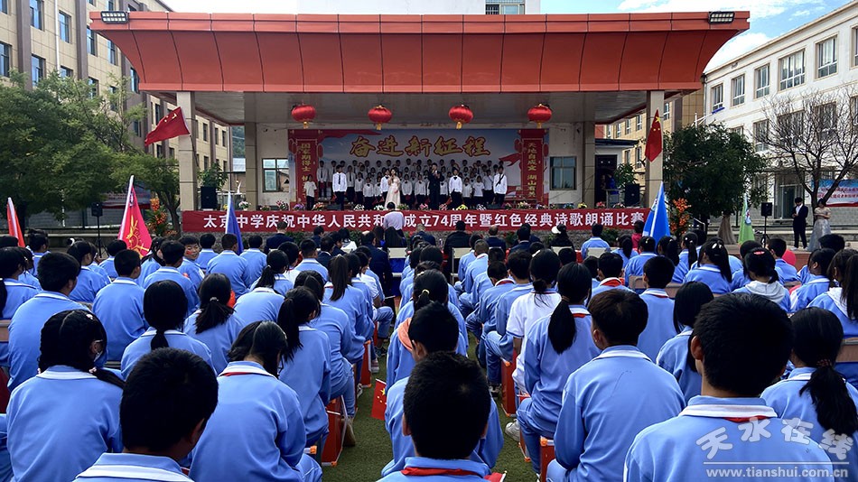 秦州區(qū)融媒體中心9月28日訊(記者 趙婷)9月27日,太京中學(xué)舉辦慶祝中華人民共和國成立74周年暨紅色經(jīng)典詩歌朗誦比賽;顒蝇F(xiàn)場,師生們朗誦了《中華少年》《祖國禮贊》《萬疆滿霞光》等紅色經(jīng)典詩文,表達(dá)了對偉大祖國的深情祝福和由衷贊美。