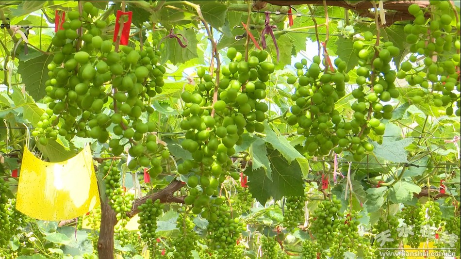 “葡萄莊園現在種了四年,種的是陽光玫瑰,畝產量三千多斤,盛果期能達到四千斤到五千斤,市場價格每斤二十元左右,口味是第一流的,又甜香味又重,我們的陽光玫瑰上市就到十月中旬了。”天水鎮(zhèn)葡萄莊園技術管理人員王建明說。