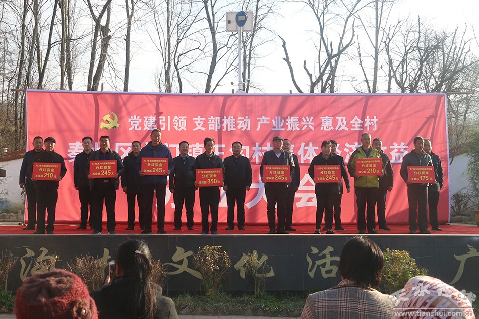 “經(jīng)過村黨支部的領(lǐng)導(dǎo),我們村民走上了致富道路。今天我們?cè)诜旨t大會(huì)上,每人分紅35元,我家一共有5口人,共分紅175元,通過全村人的努力,從明年開始要比175元更多。”秦州區(qū)大門鎮(zhèn)王溝村村民王戰(zhàn)兵說。