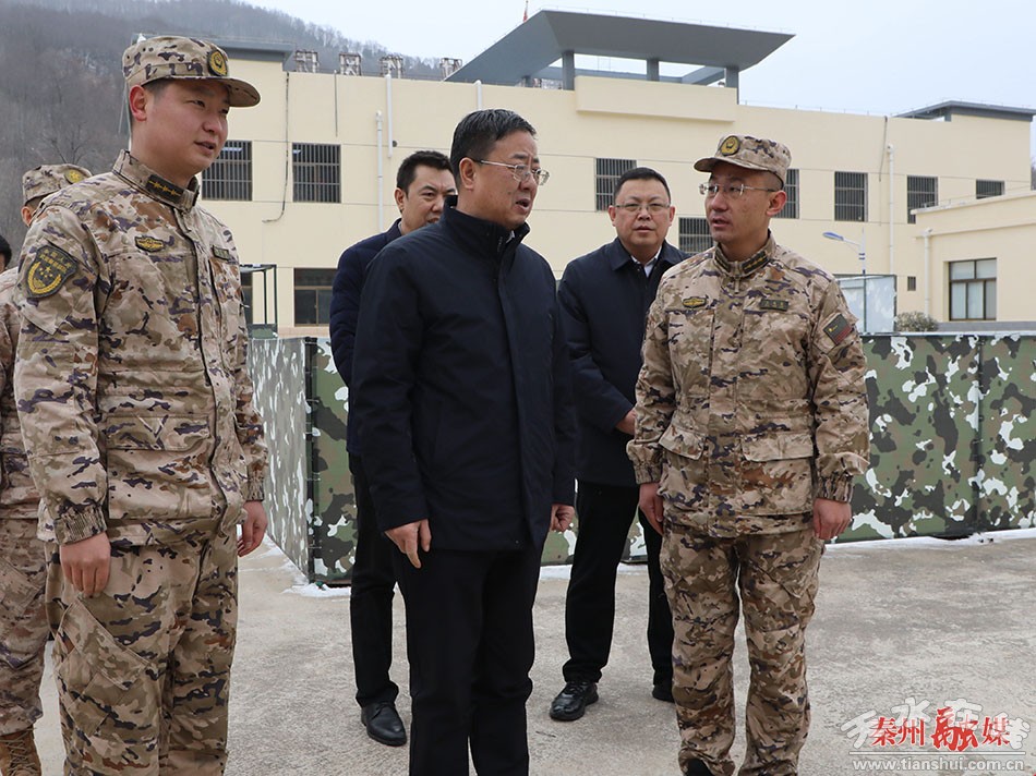在駐區(qū)武警某中隊(duì),王東紅詳細(xì)了解部隊(duì)官兵日常訓(xùn)練、生活保障及隊(duì)伍建設(shè)情況,代表區(qū)四大班子及廣大秦州人民向駐區(qū)部隊(duì)致以衷心的感謝和節(jié)日的問候。