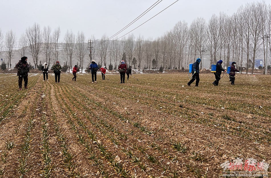 “主要是小麥返青后的追肥、鎮(zhèn)壓劃鋤保墑,還有一方面就是噴防凍劑,因為這次的雨雪對小麥的生長有利,小麥現(xiàn)在開始返青了,形成凍害,因此我們進(jìn)行田間管理。”秦州區(qū)農(nóng)業(yè)技術(shù)綜合服務(wù)中心農(nóng)業(yè)技術(shù)推廣研究員楊建太說。