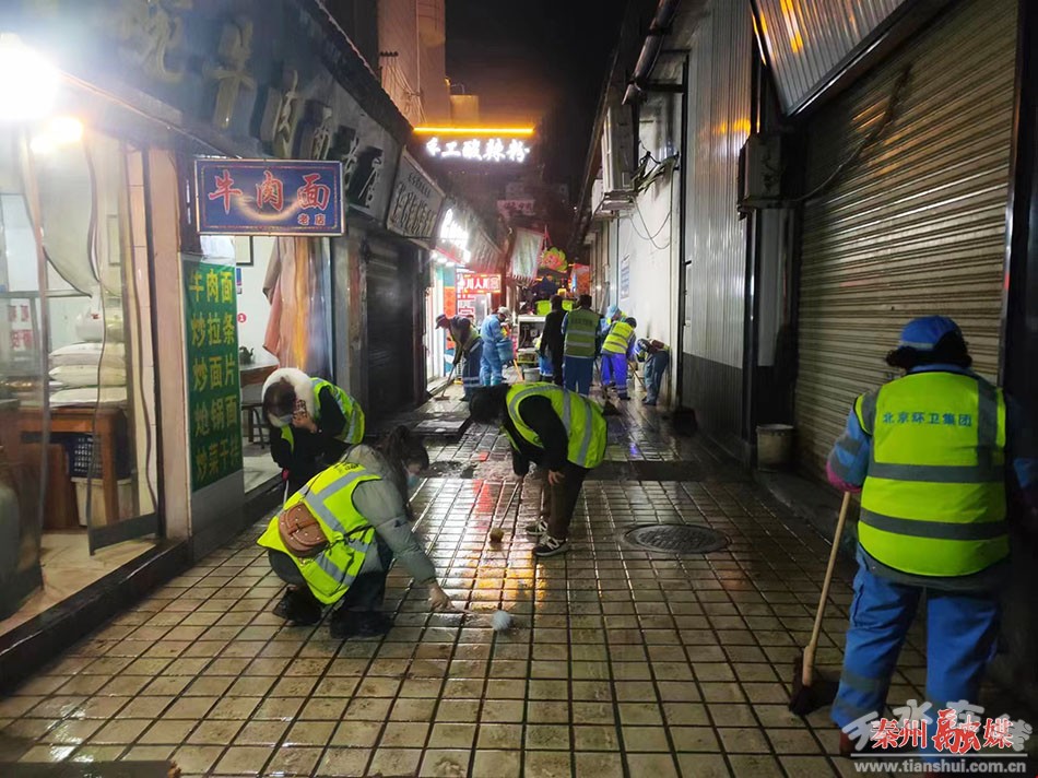 記者在大眾路看到,秦州區(qū)環(huán)衛(wèi)中心高溫清洗車正在對路面污垢進行沖洗。據(jù)了解,為守護好“舌尖”上的美味,秦州區(qū)環(huán)衛(wèi)中心抓牢經(jīng)營空檔,按照全周期、全覆蓋、全過程、全天候的工作要求,每天在早間、晚間人流量較少及商家歇業(yè)時段,對客流量最多的大眾路四合院等重點區(qū)域及周邊進行徹底整治。對作業(yè)車輛無法進入的院子、巷道和公共垃圾點等區(qū)域,出動50余名環(huán)衛(wèi)工人和管理員利用小刷子進行人工刷洗,還原路面本色。同時,設(shè)立標(biāo)識引導(dǎo)牌方便外來游客。