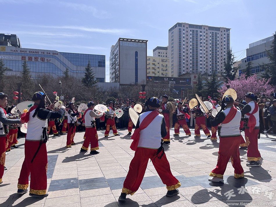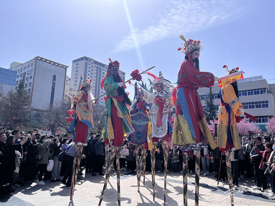 3月20日是天水麻辣燙“吃貨節(jié)”武山縣專場推介活動中,為了能更好宣傳武山縣的文旅資源,同時為前來游玩的外地游客展示地方文化,武山縣將高蹺、旋鼓舞這些非遺項目搬到了龍城天水,為游客表演。鏗鏘的鑼鼓,涌動的人群,讓整個城區(qū)都沉浸在歡樂喜慶的氛圍中。
