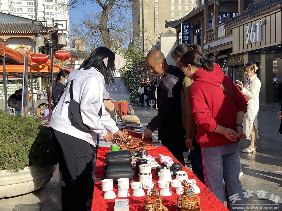 同時(shí),在中華西路步行街的本地非遺文化產(chǎn)品展臺(tái)前,富有天水地域風(fēng)格特色的產(chǎn)品吸引了眾多游客駐足欣賞,銷(xiāo)售情況可觀。