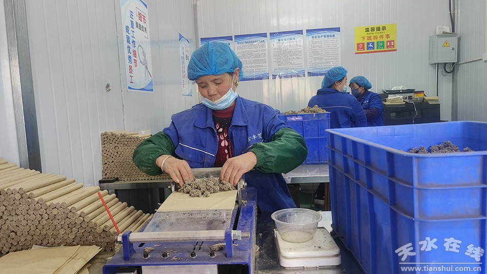 “現(xiàn)在加工的是艾條,我一小時能制作八九十個。”齊壽鎮(zhèn)張趙村村民趙秀萍說。