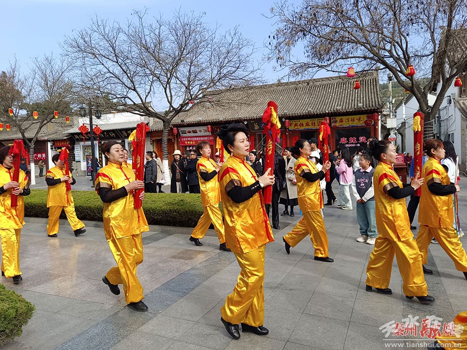 “我們來自清水縣,我們演的節(jié)目是《軒轅大帝》,共同來助力天水麻辣燙,希望全國各地的朋友來天水吃麻辣燙,也歡迎大家去我們清水做客。”伏羲廟景區(qū)非遺文化展演表演者壟文敏說。