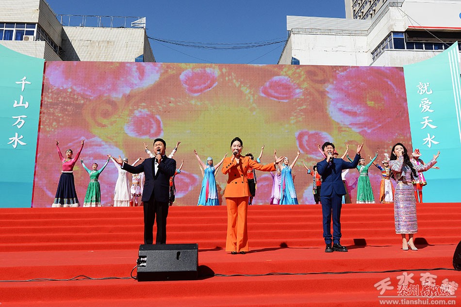 當(dāng)天上午十點(diǎn)半,首臺(tái)演出《如意甘肅歡迎您》在歌曲《隴原兒女齊祝!分衼(lái)拉開序幕。隨后,《天水白娃娃》、《敦煌謠》等充滿地域特色的歌曲、大型情景體驗(yàn)劇《天水千古秀》、秦腔《飄彩》等精彩節(jié)目一一呈現(xiàn)。