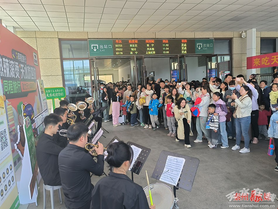 “今天我們天水龍城交響管樂團(tuán),組織部分演奏員,來到天水南站以交響樂的形式迎接來自全國(guó)各地的游客,表達(dá)天水人民的熱情,貢獻(xiàn)天水音樂人的一份力量!碧焖埑墙豁懝軜穲F(tuán)副團(tuán)長(zhǎng)胡鴻說。