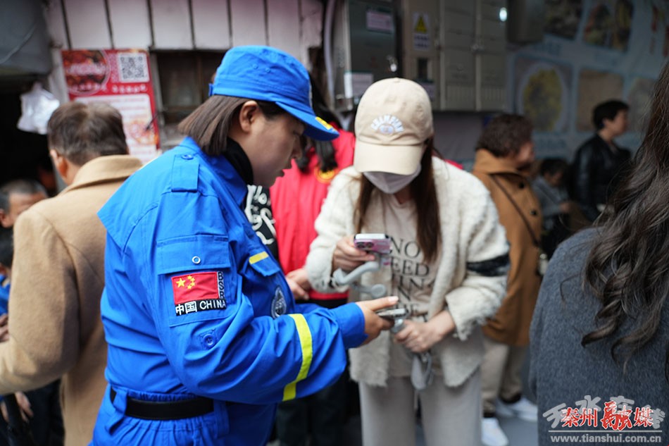 站在大量的人流中間,身穿紅馬甲的志愿者也少有活動(dòng)空間,大多數(shù)時(shí)間他們都在向游客喊話,耐心引導(dǎo)游客有序排隊(duì),并時(shí)不時(shí)為游客熱情分享秦州美食和秦州景點(diǎn),推薦最佳旅游路線,解答游客心中疑問。志愿者熱情、友好、禮貌、周到的服務(wù),讓每一位外地朋友都感受到了天水人民的熱情和真誠。