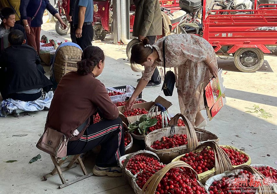 秦州區(qū)融媒體中心5月24日訊(記者 李欣 李鑫)享有“春果第一枝”美譽(yù)的大櫻桃,以其色澤鮮艷,營養(yǎng)豐富備受市場青睞。進(jìn)入五月下旬以來,秦州大櫻桃陸續(xù)上市,吸引各地客商前來收購,熱銷全國。