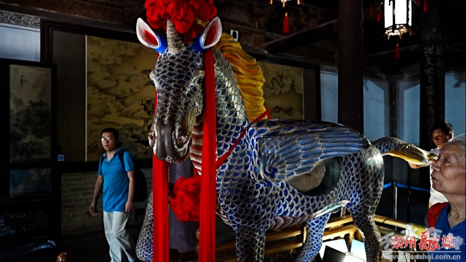 “在很多古書壁畫上,伏羲和女媧以人面蛇身來面世,那關(guān)于這個蛇身,就是伏羲部落的原始圖騰。之后從蛇演變?yōu)辇垐D騰。古人說:馬長八尺即為龍,龍、馬圖騰形象寓意和合包容、開拓進取的民族精神,伏羲氏以龍紀官,豐富社會治理,影響中華民族生生不息、綿延發(fā)展的龍文化就此形成!碧焖胁┪镳^講解員楊朝迪介紹說。