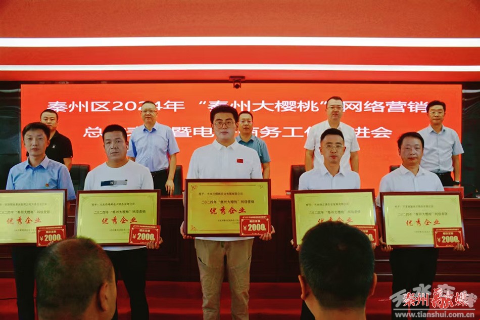 會上,區(qū)商務(wù)局通報了2024年“秦州大櫻桃”網(wǎng)絡(luò)營銷情況及全區(qū)電子商務(wù)工作開展情況;對2024年“秦州大櫻桃”網(wǎng)絡(luò)營銷優(yōu)秀企業(yè),表現(xiàn)優(yōu)異、業(yè)績突出的網(wǎng)銷達人,寄遞服務(wù)企業(yè)等進行了表彰;受表彰代表作了交流發(fā)言。