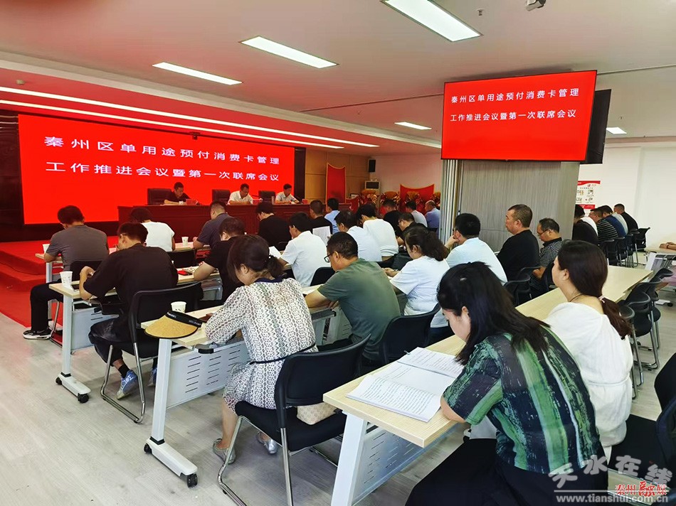 會(huì)議傳達(dá)學(xué)習(xí)了《甘肅省單用途預(yù)付消費(fèi)卡管理?xiàng)l例》及其《實(shí)施細(xì)則(試行)》,宣讀了《秦州區(qū)單用途預(yù)付消費(fèi)卡管理工作方案》,明確了相關(guān)單位職責(zé)。