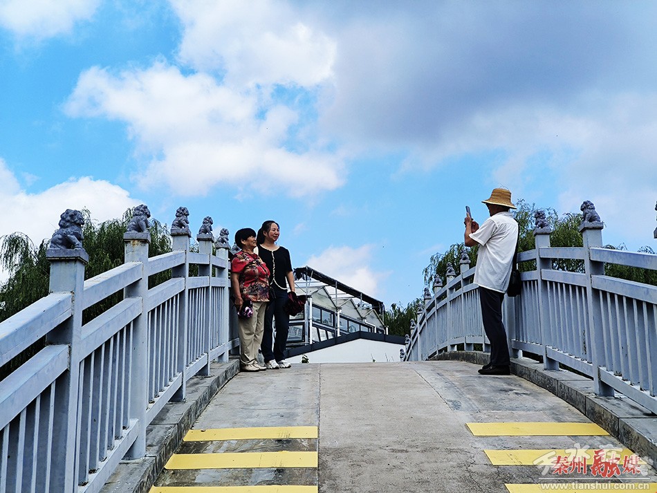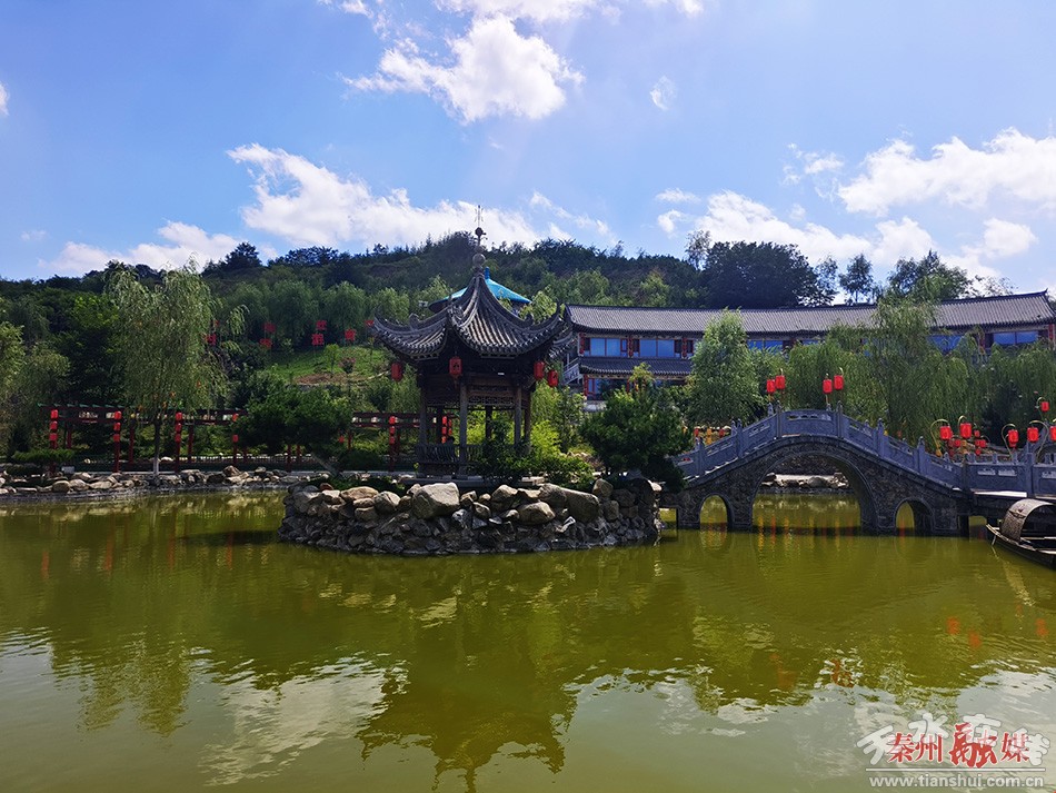 暑假期間,持續(xù)高溫,鄉(xiāng)村避暑游受到游客青睞。走進(jìn)秦州區(qū)蘇灣民俗莊園,亭臺(tái)樓閣、水榭小橋,以及一幢幢古色古香的徽派建筑,讓人宛若置身江南,瞬間將炙熱的暑氣一掃而光,讓游客們頓感清涼。