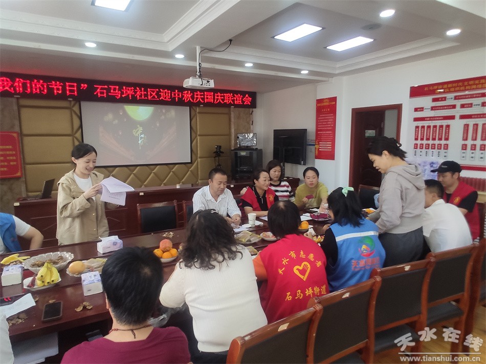 石馬坪街道石馬坪社區(qū)新時(shí)代文明實(shí)踐站組織開展了“迎中秋慶國慶”聯(lián)誼會(huì)活動(dòng);顒(dòng)中,大家開展了有獎(jiǎng)問答活動(dòng),三名社區(qū)工作人員分別帶來了《沁園春.雪》《用生命影響生命》等詩朗誦活動(dòng),活動(dòng)的最后,大家共同高歌一曲,將整個(gè)活動(dòng)的氣氛推向最高點(diǎn)。