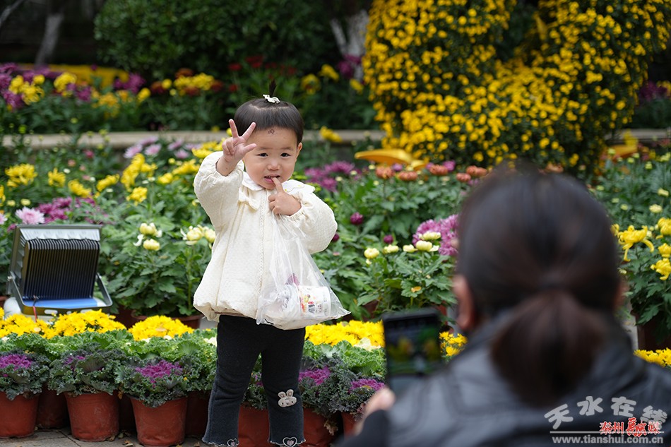 “今天我和小朋友們一起來看菊花,菊花很好看!睂W(xué)生劉憶馨說。