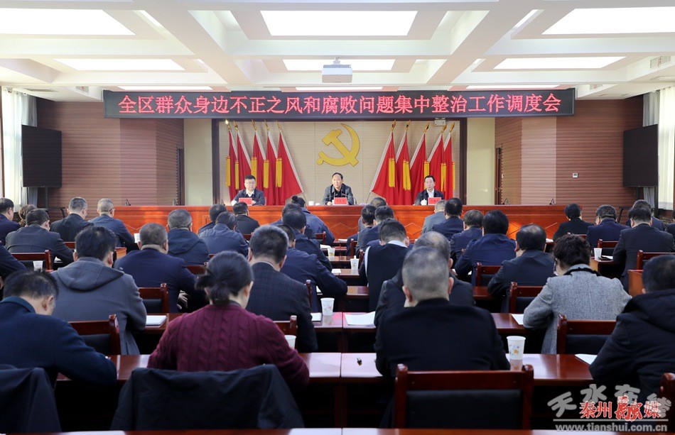 秦州區(qū)融媒體中心10月28日訊(記者 邵千)10月28日,秦州區(qū)召開群眾身邊不正之風(fēng)和腐敗問題集中整治工作調(diào)度會,傳達學(xué)習(xí)了全國、全省整治殯葬領(lǐng)域腐敗亂象專項行動動員部署會議精神,通報全區(qū)集中整治工作進展情況,安排下一階段重點工作。市委常委、區(qū)委書記康泰來出席會議并講話。區(qū)委副書記、區(qū)長孟曉龍主持會議。