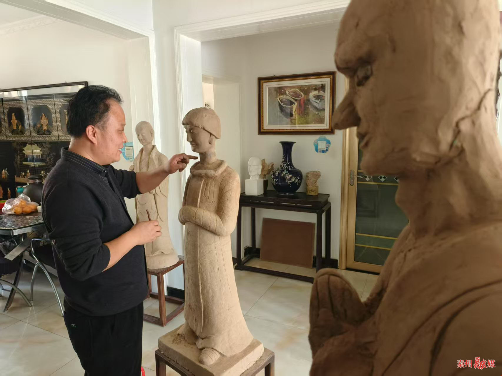 他在泥塑的創(chuàng)作中,從用料的選擇到配方的制定,都遵循傳統(tǒng)造像的用泥方法,并依據(jù)所創(chuàng)作的產(chǎn)品,對工序進(jìn)行改良和調(diào)整,讓泥塑傳承古法的同時,也具備現(xiàn)代特征。