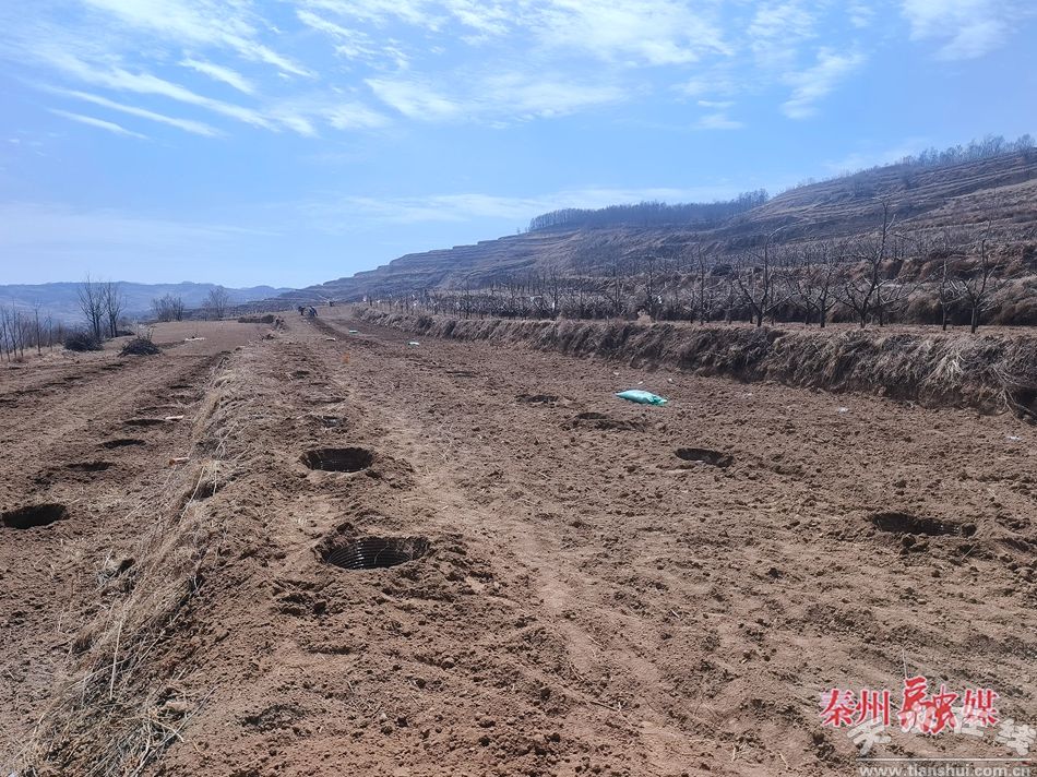 “2024年我們村改造了296畝老舊果園,今年我們村又繼續(xù)改造118畝蘋果,前期挖豐產(chǎn)溝、填埋秸稈和施有機(jī)肥已經(jīng)全面完成,從3月20日開始,我們開始挖定植穴、施有機(jī)肥、放防鼠網(wǎng),等我們的樹苗到位后,開始栽植果樹!痹斫兼(zhèn)袁家河村黨支部書記尹峰說。