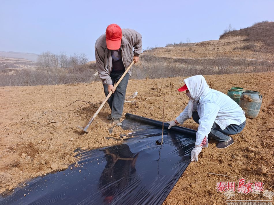 走進(jìn)藉口鎮(zhèn)新堯村,放眼望去,一壟壟膜布整齊地嵌在果園里,在陽(yáng)光下熠熠生輝。村民們正忙著開(kāi)溝、澆水、覆膜、修整土地,田間地頭呈現(xiàn)出一派忙碌的勞作景象。