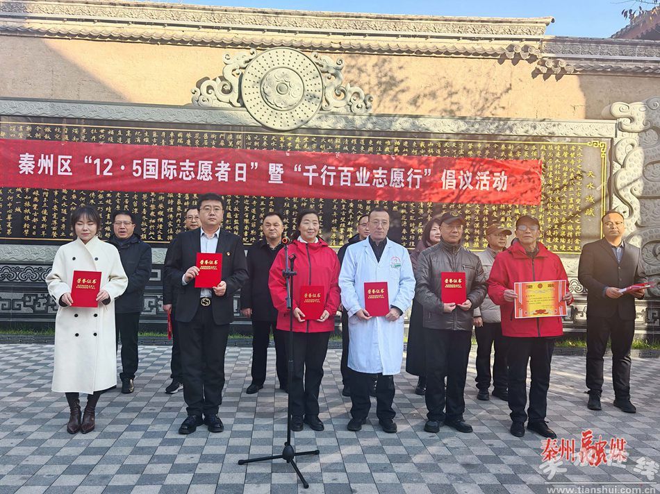 秦州區(qū)融媒體中心12月5日訊(記者 楊文慧)溫暖冬日,志愿同行。12月5日是第40個國際志愿者日。當天下午,秦州區(qū)舉行國際志愿者日暨“千行百業(yè)志愿行”倡議活動。