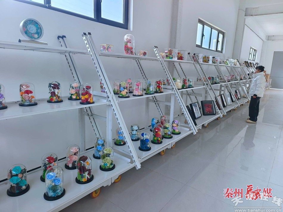 除了鮮切花和盆栽花的培育銷售,產(chǎn)業(yè)園還積極拓展花卉深加工領(lǐng)域。在深加工區(qū)內(nèi),貨架上整齊擺放著各類花藝工藝品,琳瑯滿目、精致美觀;ㄋ噹焸兦墒址w,將鮮花進(jìn)行剪裁、粘貼、編織,制作成永生花等工藝品,讓花朵的美麗得以長久留存。這一舉措不僅豐富了產(chǎn)品種類,更有效延伸了產(chǎn)業(yè)鏈條,大幅提升了花卉產(chǎn)業(yè)的附加值。