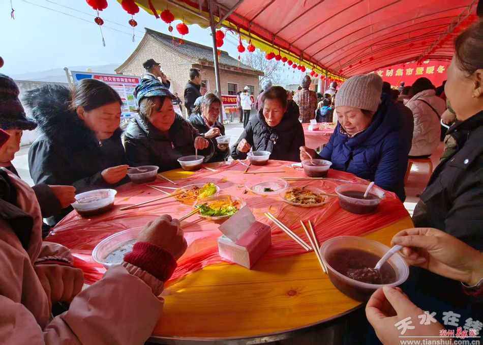 “臘八粥好喝,帶著孫子一起過來,今天很熱鬧。”秦州區(qū)中梁鎮(zhèn)唐家河村村民馬彩香說。