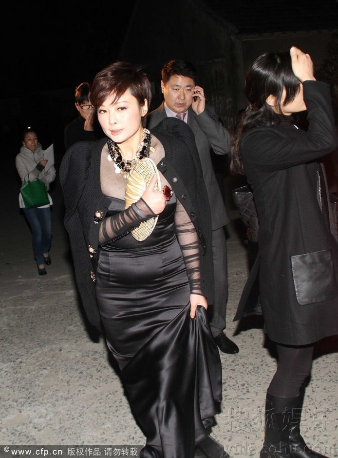 2011年4月1日訊,上海,3月31日,美國高級(jí)成衣品牌DVF首度登陸中國的上海大秀派對(duì)舉行。袁莉身穿黑色蕾絲禮服亮相現(xiàn)場(chǎng),在于冬的護(hù)送下走入內(nèi)場(chǎng),不過由于裙子太長,在路上絆倒,十分尷尬。