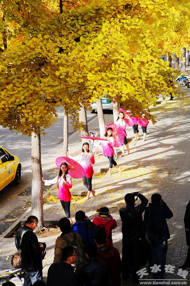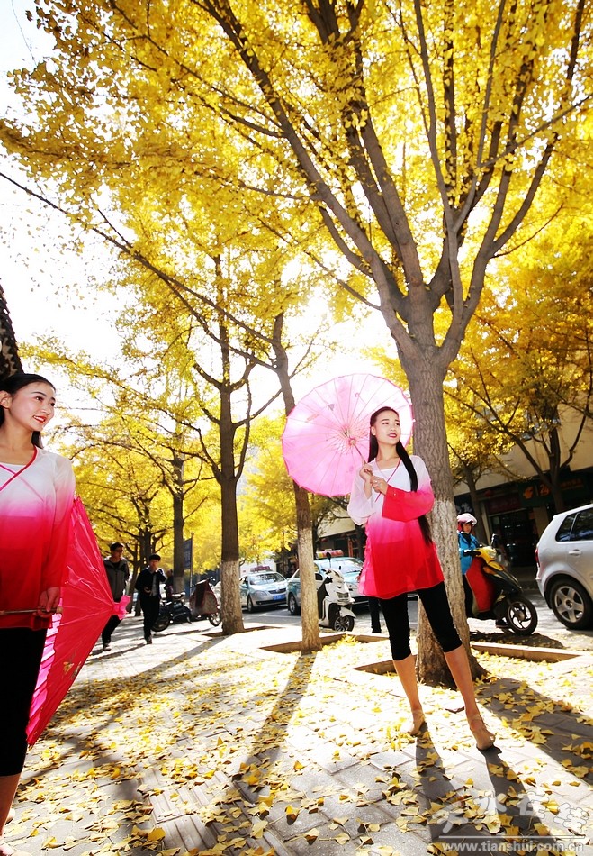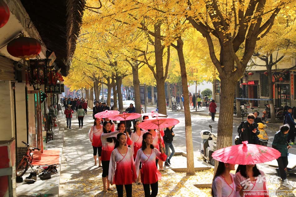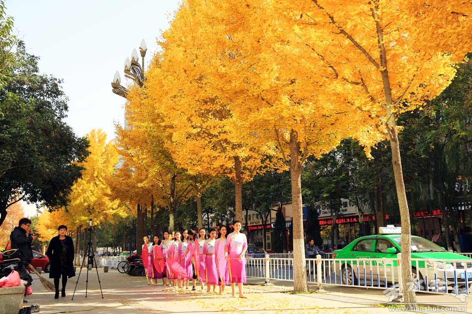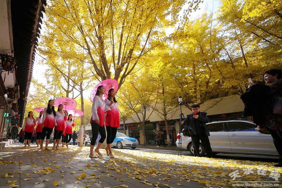 初冬的天水城,秦州區(qū)青年南北路和民主東西路的銀杏樹,披上了金黃色的盛裝,宛若“金龍”當(dāng)街飛舞,成為天水城一道靚麗的風(fēng)景。
