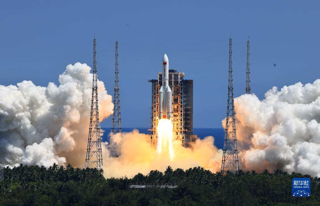 7月24日,搭載問天實驗艙的長征五號B遙三運載火箭,在我國文昌航天發(fā)射場點火發(fā)射。新華社記者 李剛 攝
