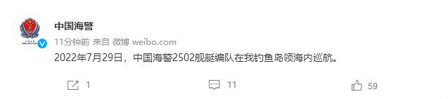 (2022/7/29 22:32:16) 來源:中國海警局官方微博
