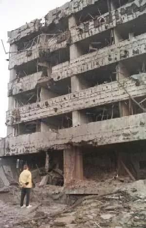被炸后的我駐南使館外景。(呂巖松 攝)