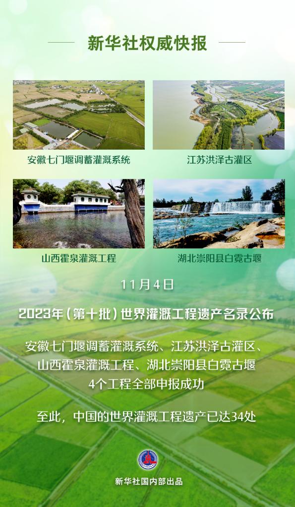 記者4日從水利部獲悉,在印度維薩卡帕特南召開的國際灌排委員會第74屆執(zhí)行理事會上,2023年(第十批)世界灌溉工程遺產(chǎn)名錄公布,安徽七門堰調(diào)蓄灌溉系統(tǒng)、江蘇洪澤古灌區(qū)、山西霍泉灌溉工程、湖北崇陽縣白霓古堰等4個工程成功入選。