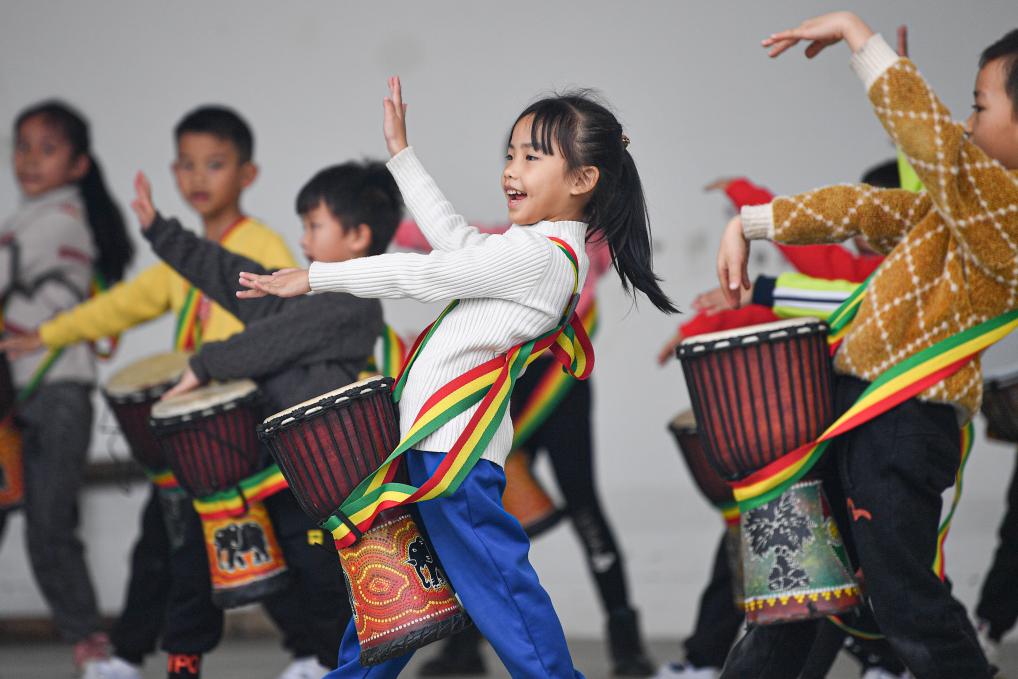 2022年1月19日,小朋友們在海南儋州和慶鎮(zhèn)六羅鄉(xiāng)村大舞臺排練鄉(xiāng)村春晚節(jié)目。新華社記者 蒲曉旭 攝