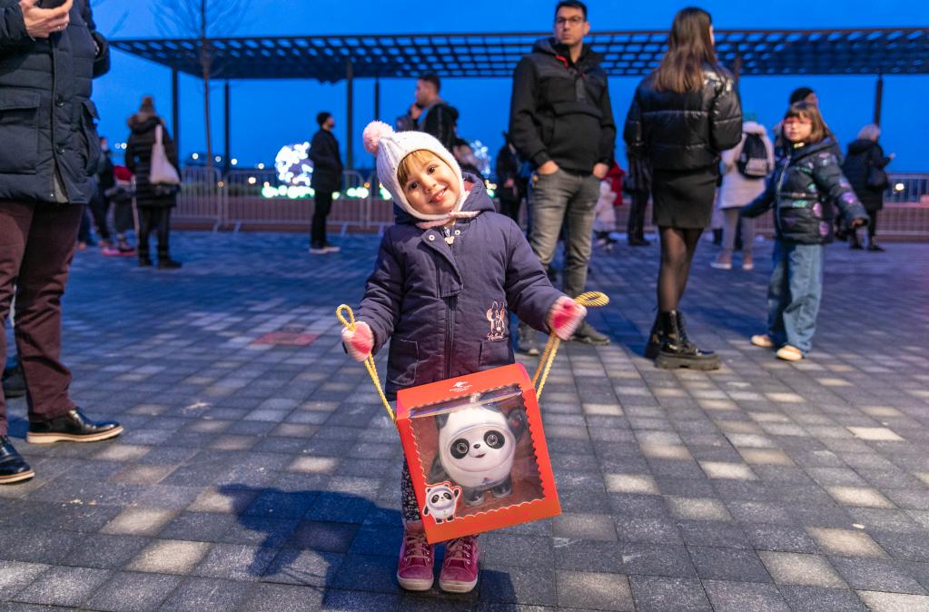 1月31日,在塞爾維亞貝爾格萊德舉行的中國(guó)燈展上,一名兒童拿著北京冬奧會(huì)吉祥物“冰墩墩”。新華社發(fā)(王韡攝)