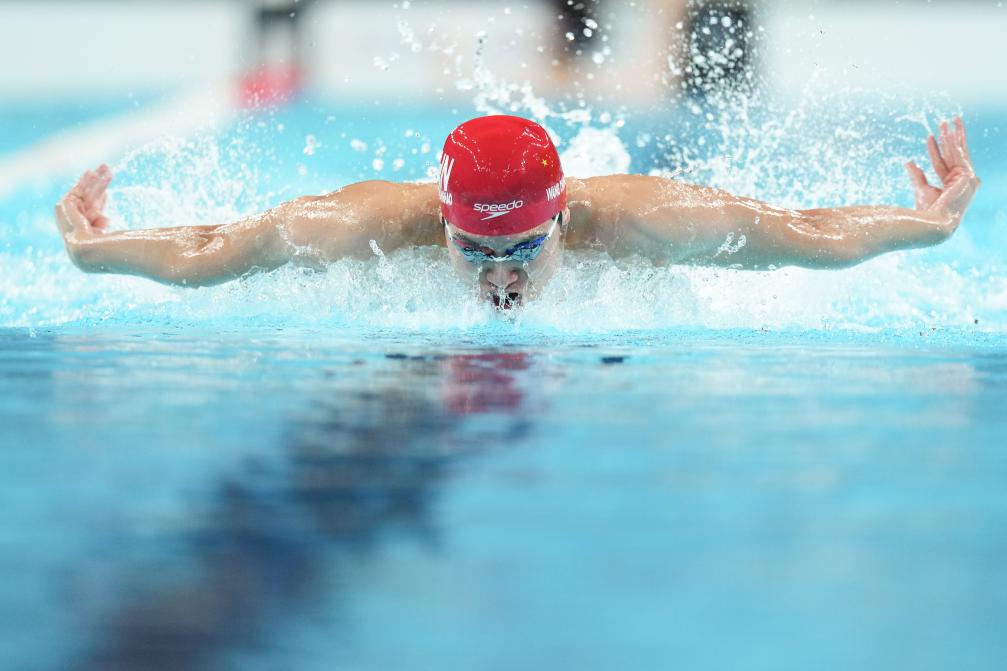 8月3日,中國隊選手王長浩在男子4x100米混合泳接力預(yù)賽中,最終,中國隊以第二名的成績晉級決賽。新華社記者 薛宇舸 攝