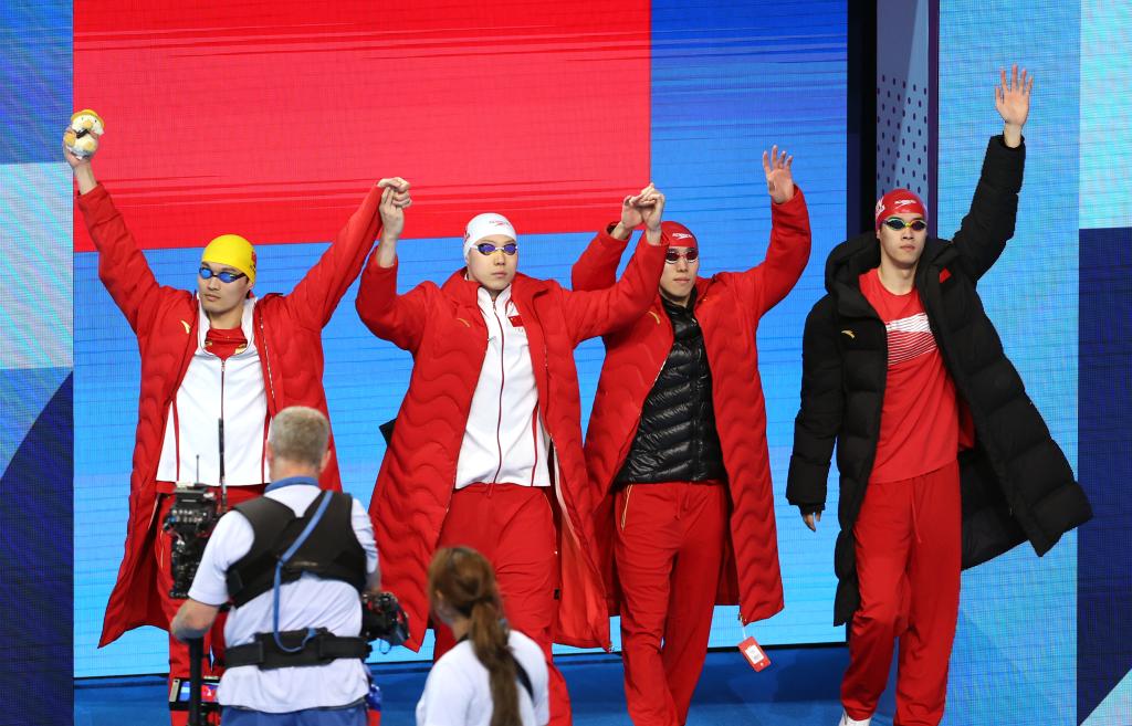 覃海洋在男子混接中游出57秒98,比3日在男女混接時的57秒82稍微慢了一點。賽后,覃海洋對自己的分段成績不滿意。潘展樂給出了提振士氣的安慰和鼓勵:“我們是冠軍!不滿意的應(yīng)該是別人!”